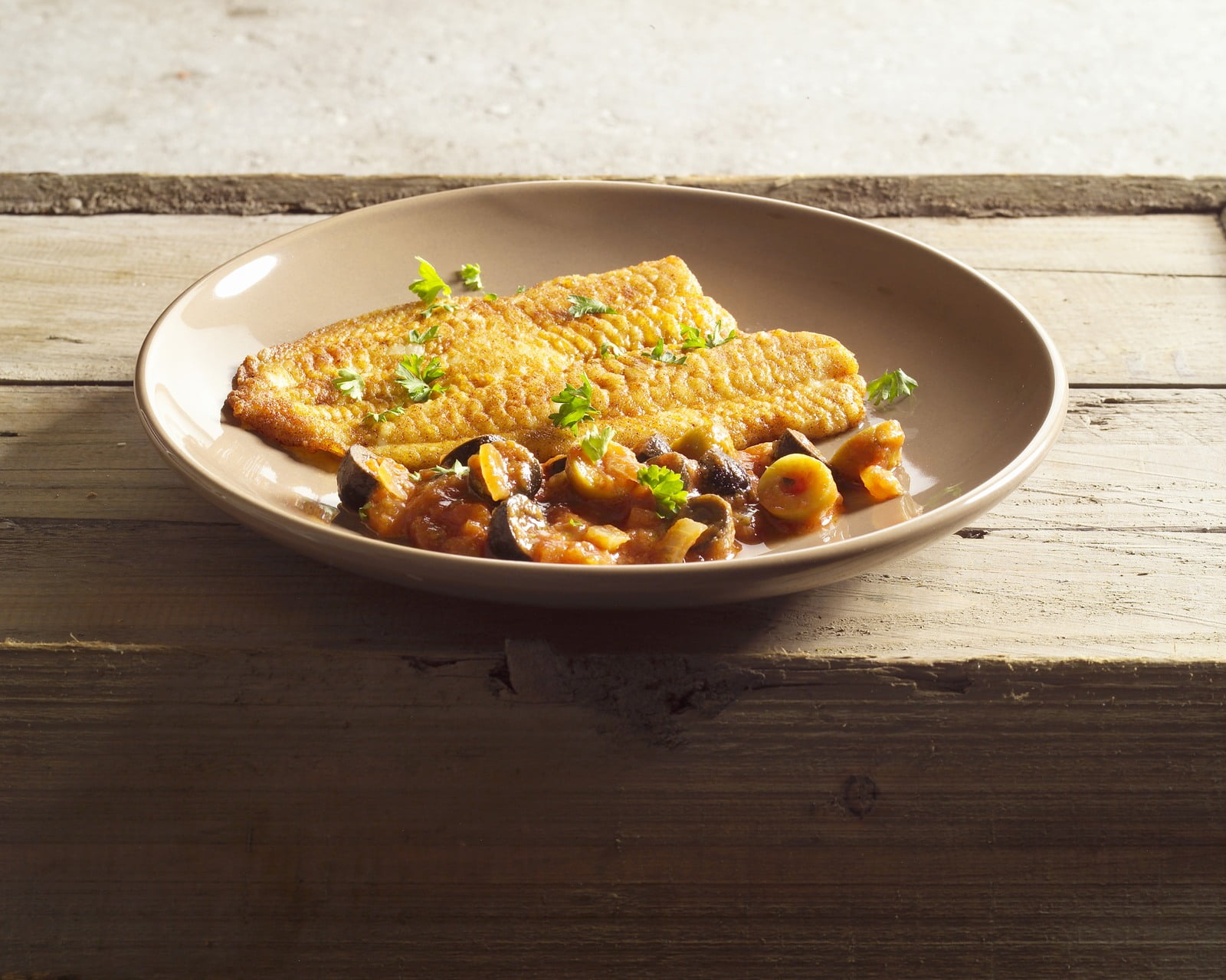 Een droge, volfruitige Syrah Rosé uit de Languedoc past bij schol, tomaat en het pittige van de olijven.